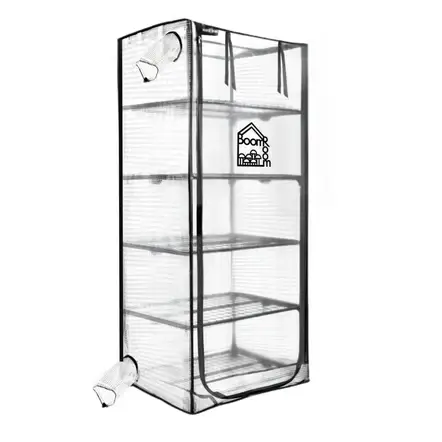 Cultivate mushrooms effortlessly with the North Spore Boom Room II Mushroom Martha Tent & Grow Rack. This custom-designed Martha tent features ultra-durable clear vinyl with reinforced woven siding and a sub-floor layer for a waterproof enclosure. The flexible tent design includes adjustable holes for FAE fan and humidifier, making it ideal for mushroom cultivation. Inside, the grow rack offers 5 shelves, each with a 20 lb. capacity, perfect for supporting your mushroom kits. The double zipper clear vinyl door panel allows easy access and lets in ambient, indirect light for optimal mushroom growth. Built-in loops for hanging humidity and fan controllers add convenience to your setup.